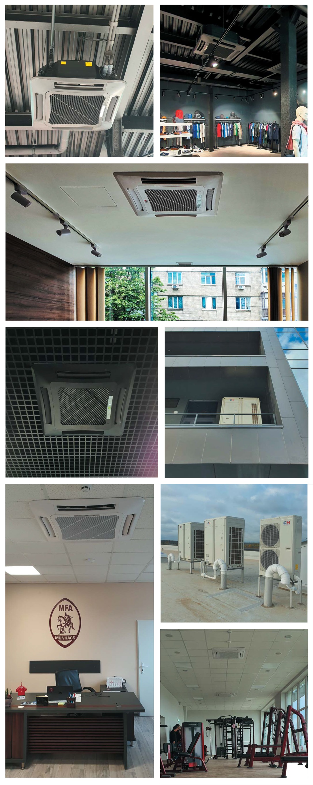 Касетні кондиціонери йдуть у комплекті із зовнішнім блоком, який встановлюється з зовні будівлі або на технічному поверсі.