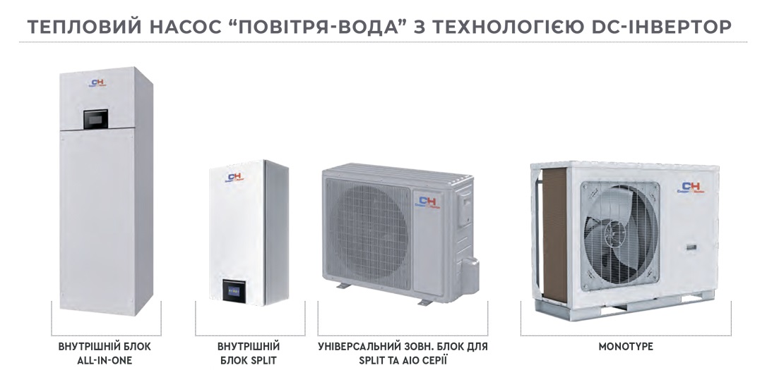 | Тип теплового насосу | повітря-вода | повітря-вода | повітря-вода | повітря-повітря |